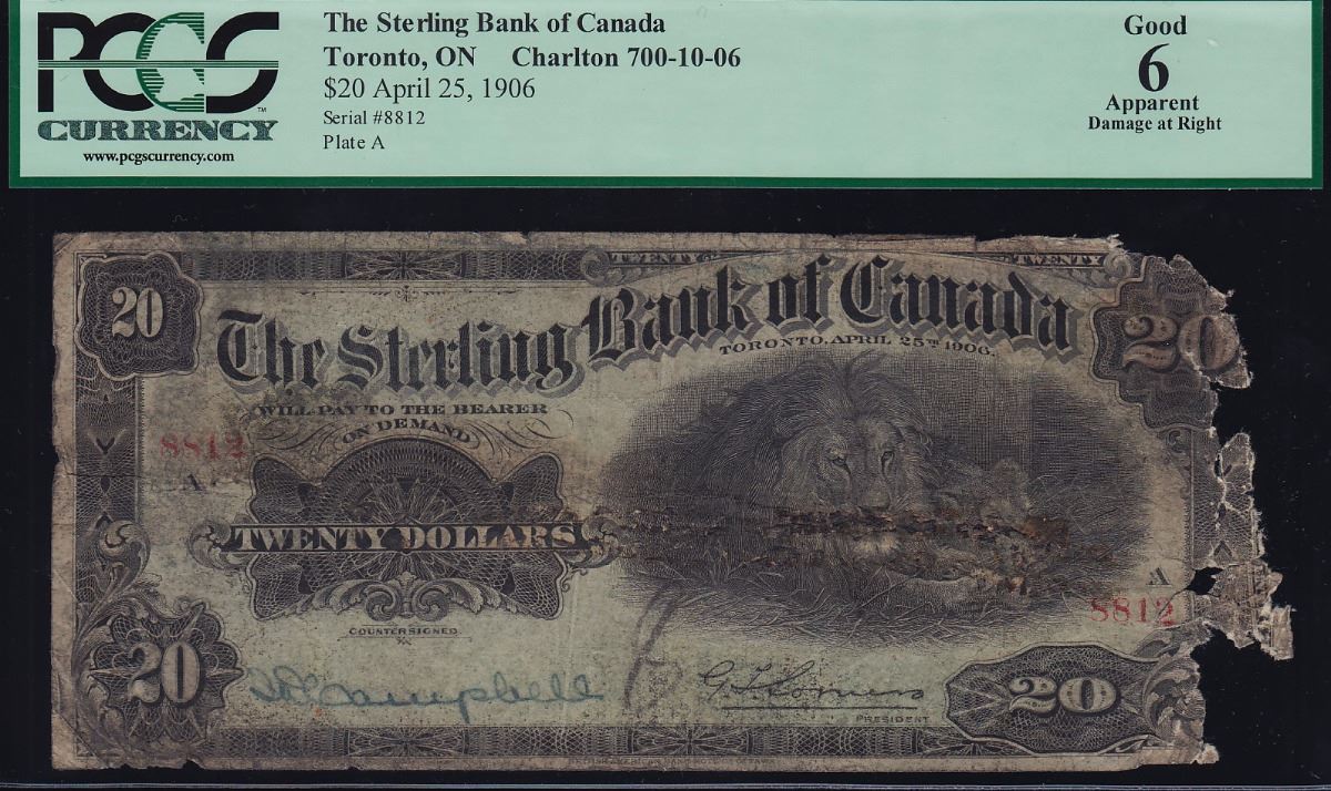 Sterling Bank of Canada $20, 1906