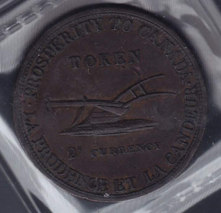 TOKENS OF UPPER CANADA - Br 717. McL 31. Lesslie Twopence.