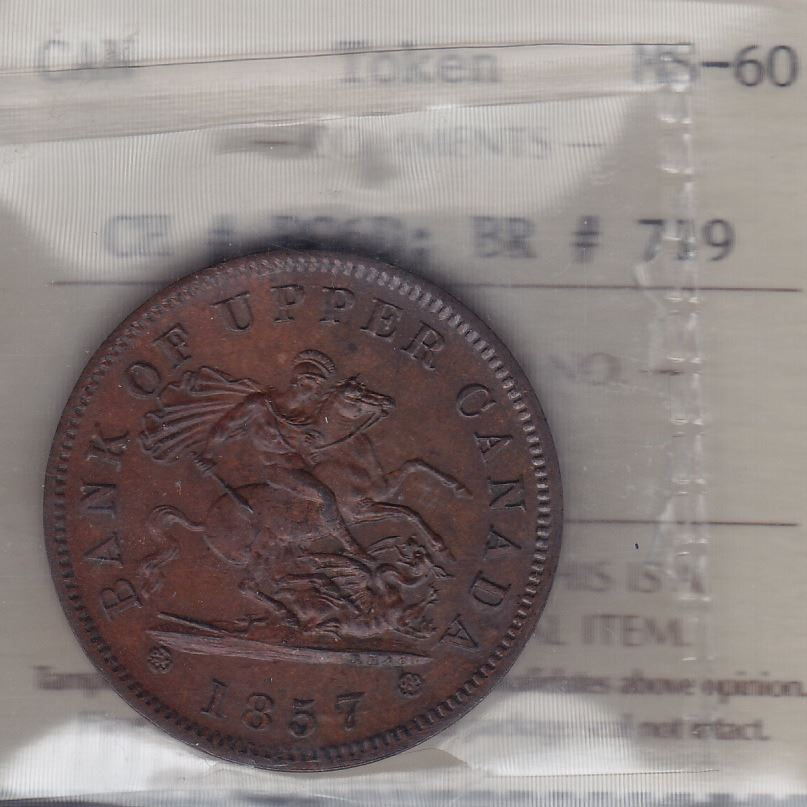 TOKENS OF UPPER CANADA - Br 719. Uncirculated 1857 penny.