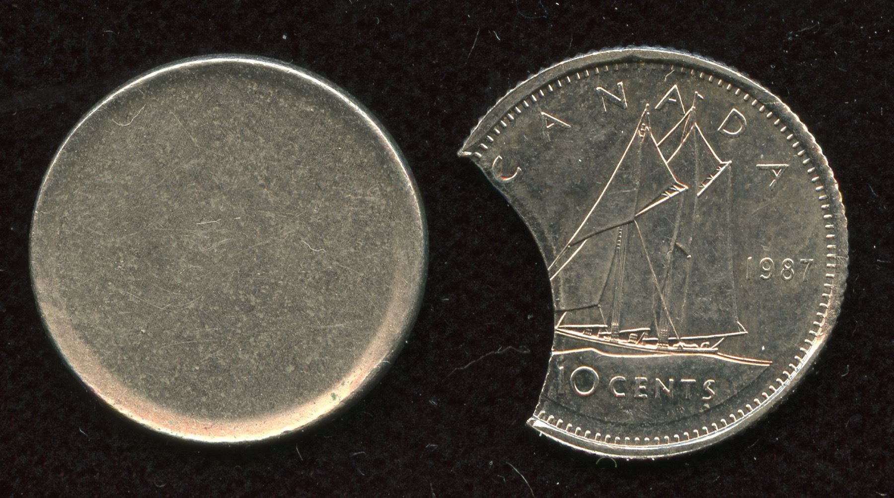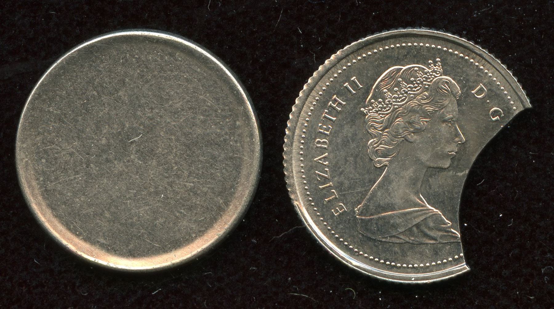 Includes: 1987 clipped planchet & blank planchet (magnetic). 2 Pcs.