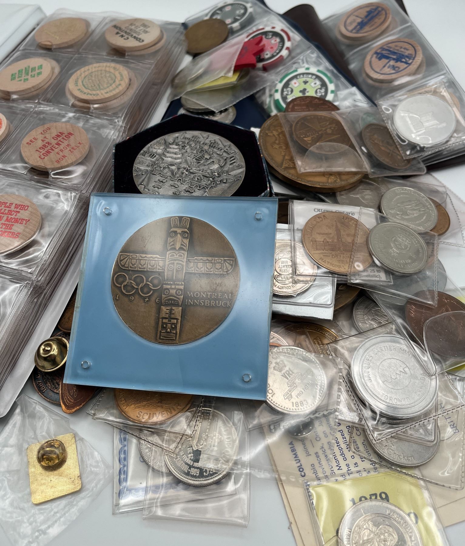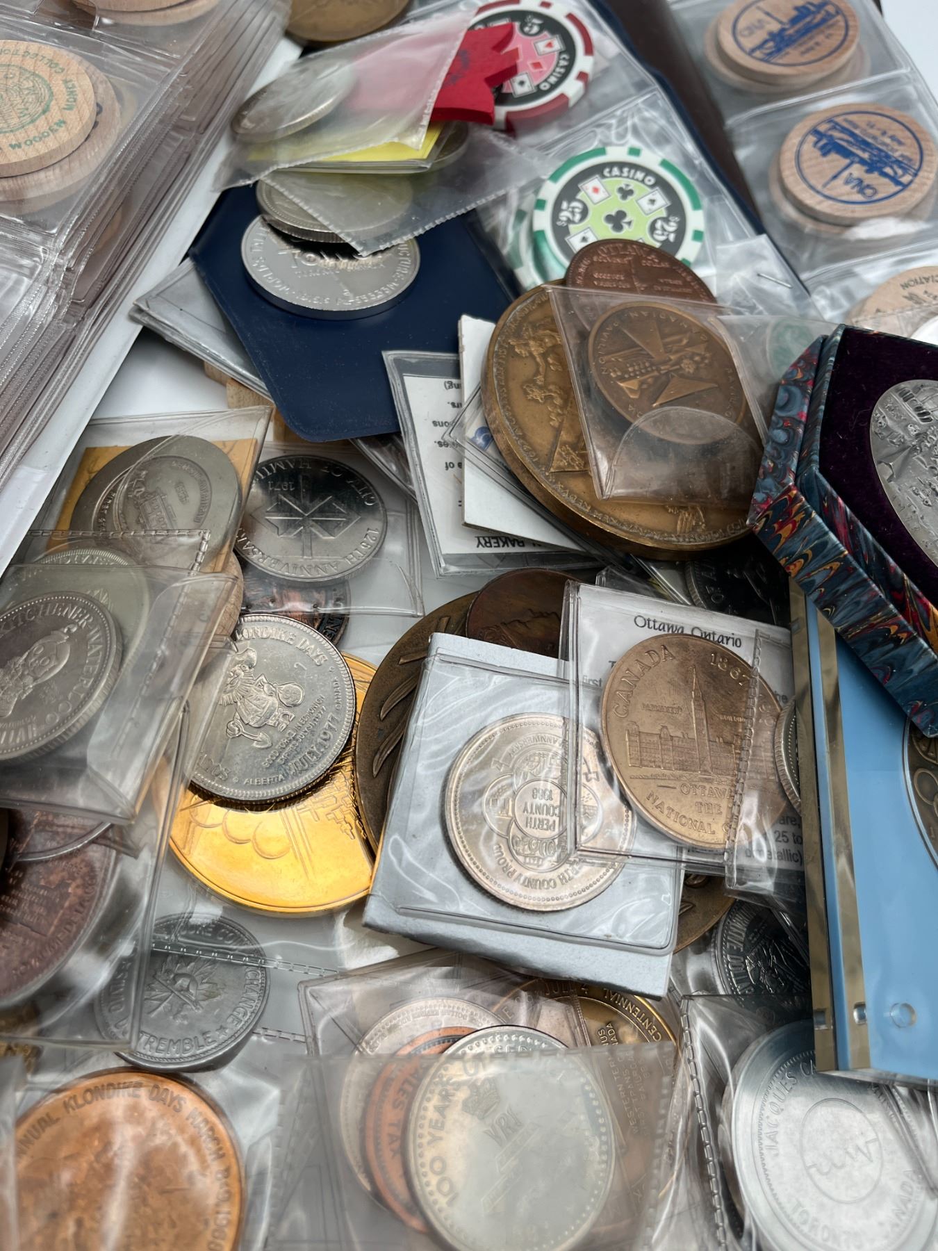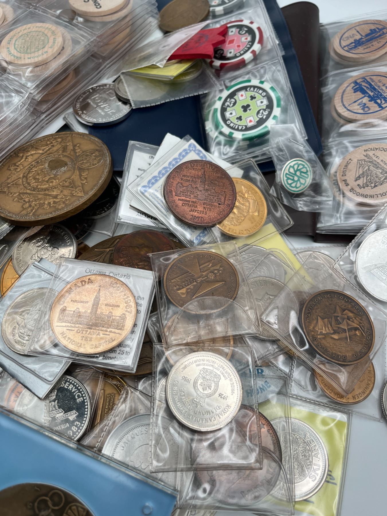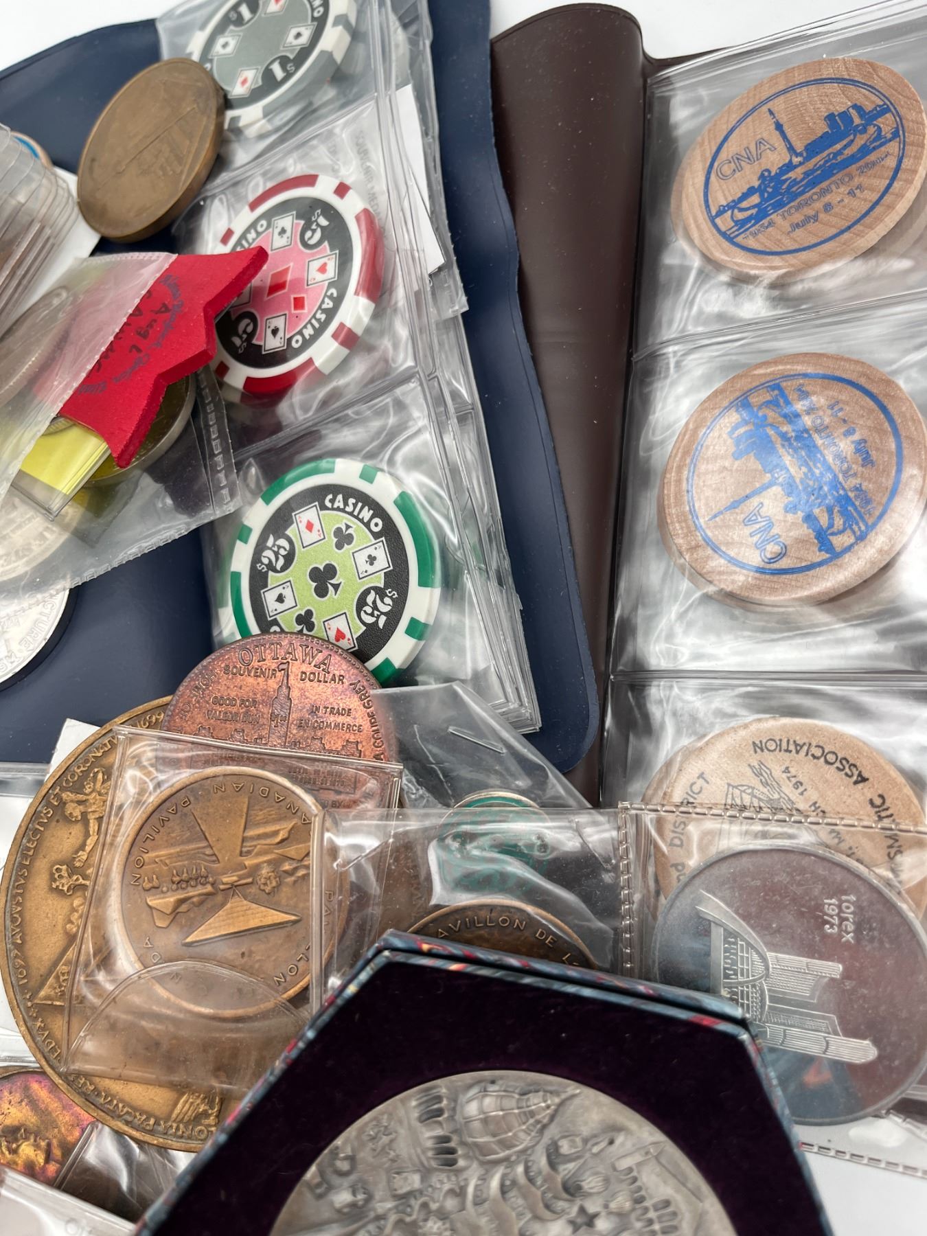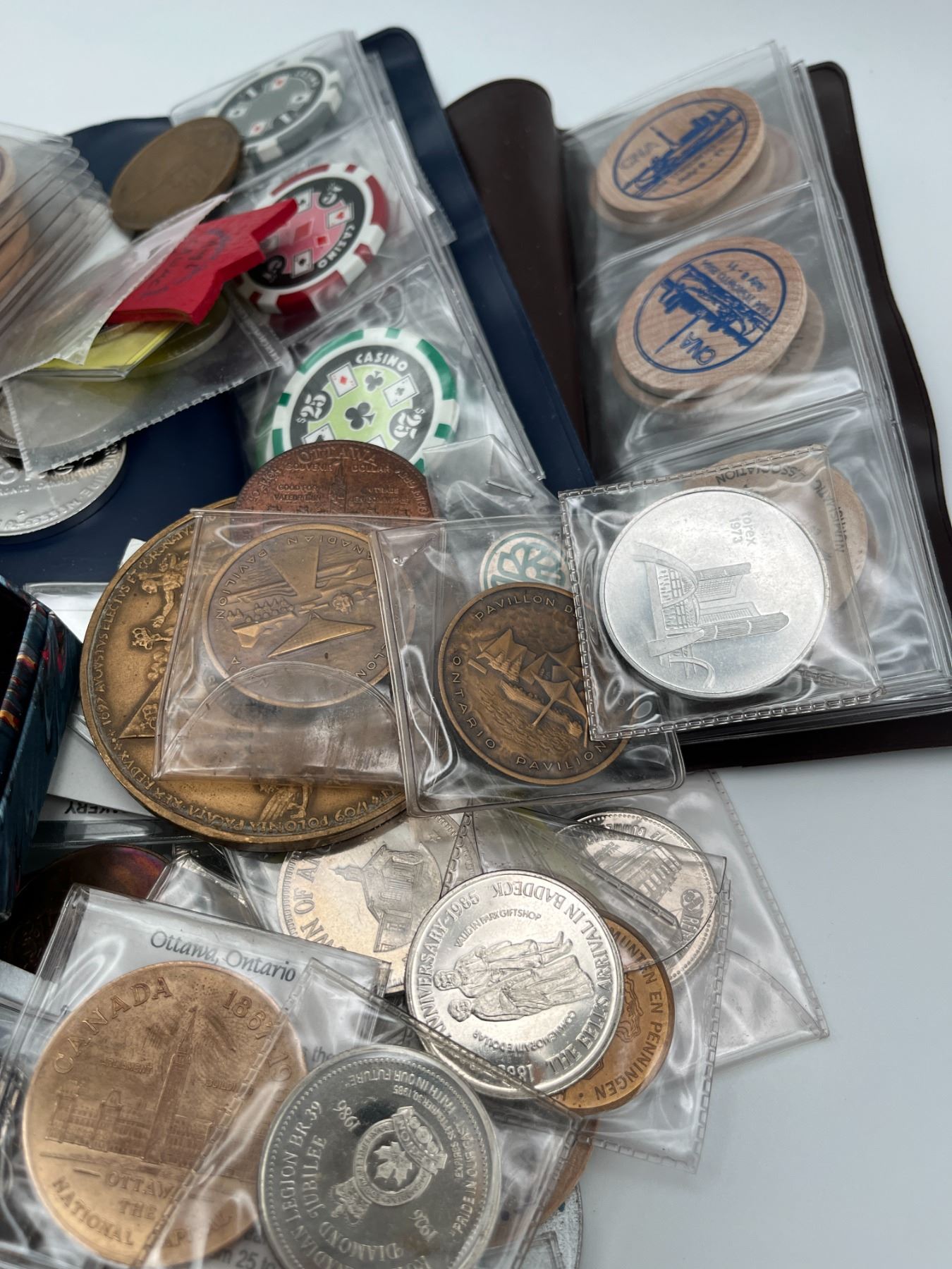 Lot of tokens, medals, trade dollars, gaming/casino chips, wooden nickels, 1967 Expo, ect...Large Group!