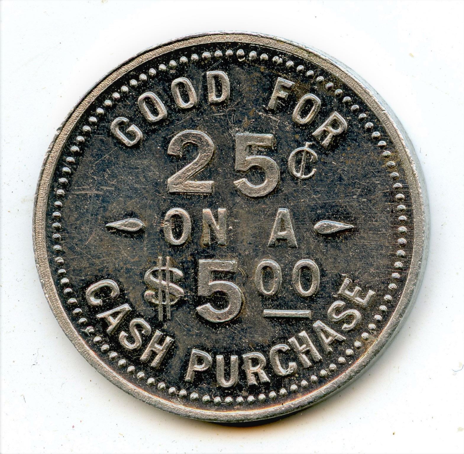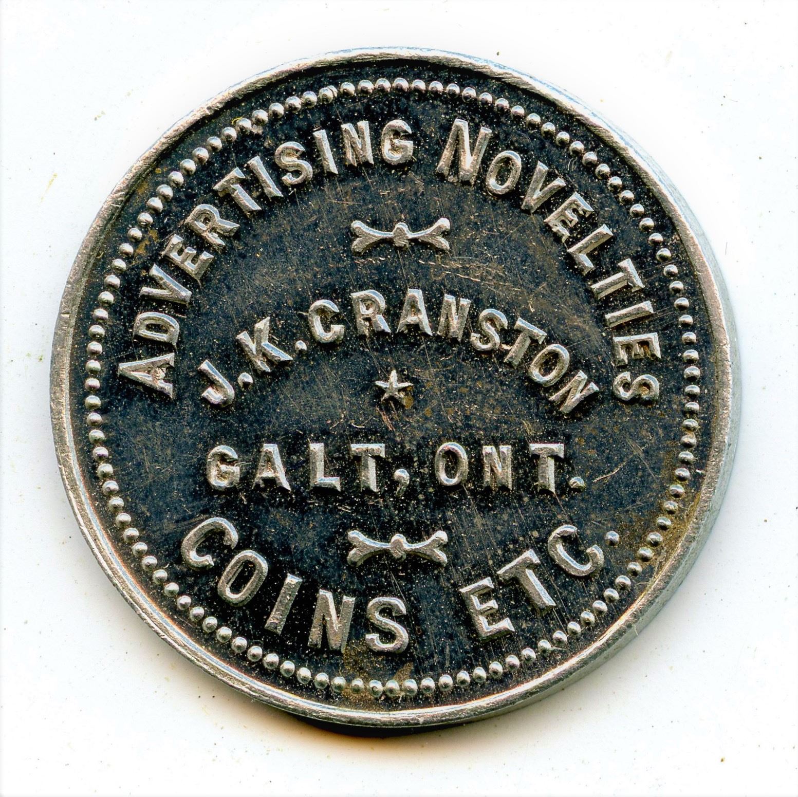 Bowman 404-L-I, McColl 900, 25c on a $5 purchase, Cranston Co. Advertising, Galt, Alum., 28mm. Unc.