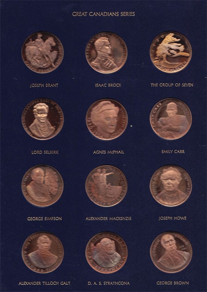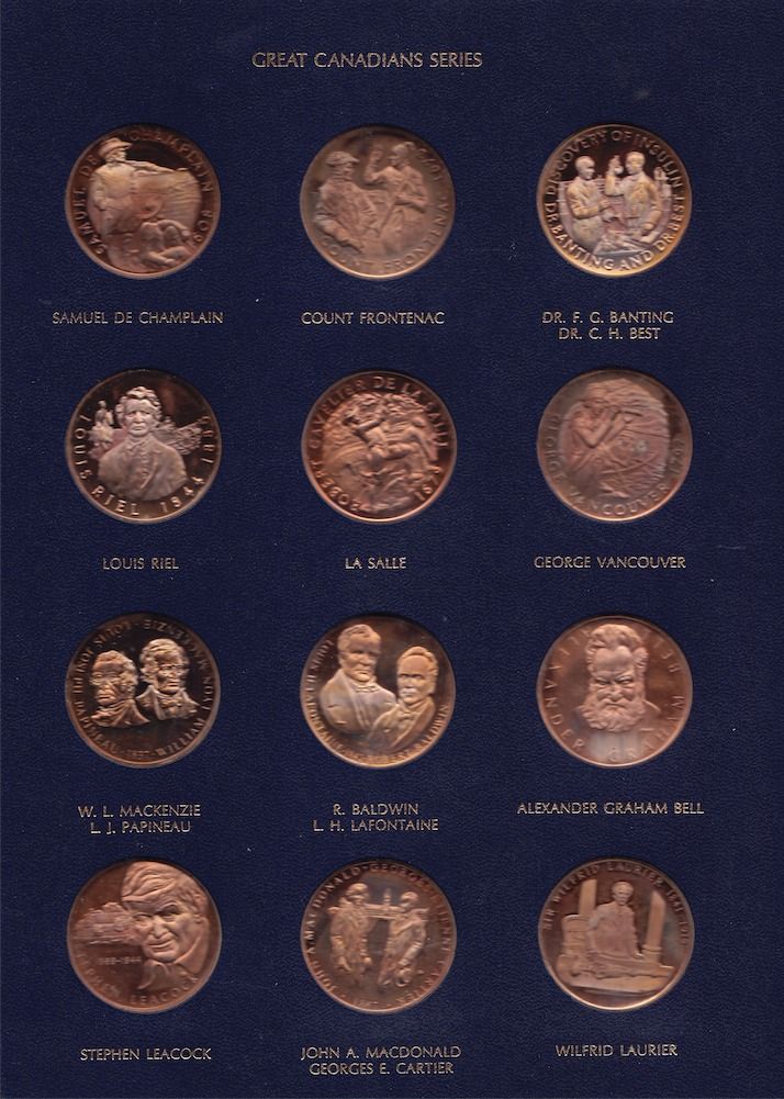 The Great Canadians Medallions - Struck by the Wellings Mint, in original folder, includes 24 Bronze medals.