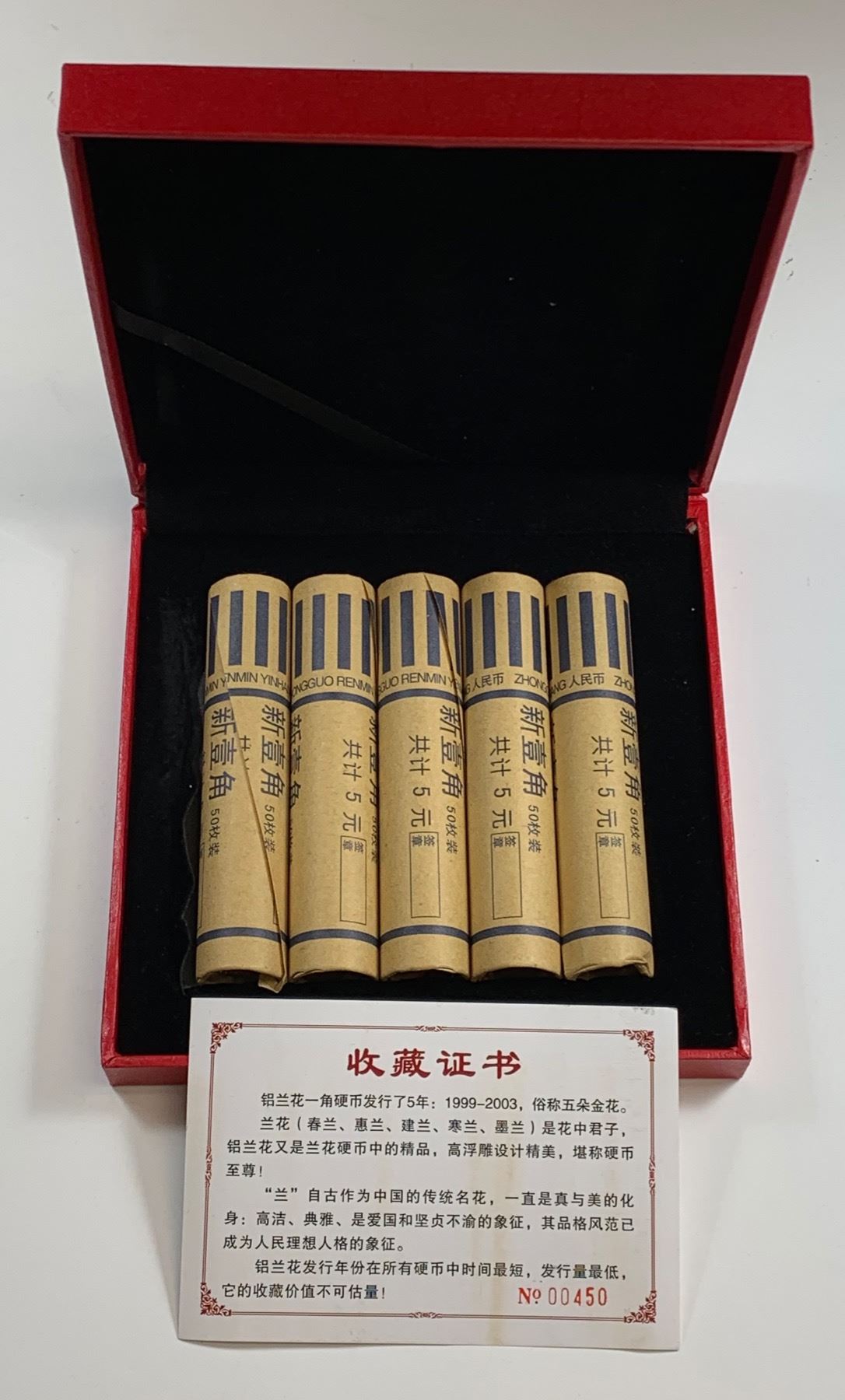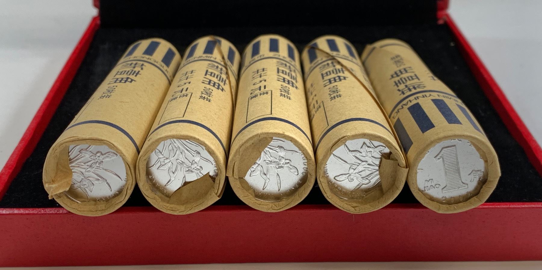Aluminum Orchid 10 cent coin, 5 rolls in total: 1999, 2000, 2001, 2002, 2003. Original Package.