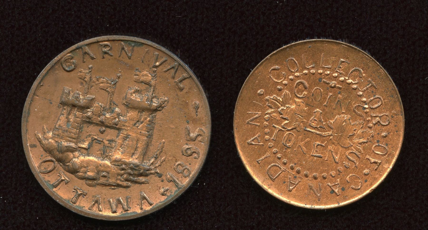 Bo 8-27. Mc914. Collector of Canadian Coins and Tokens, copper; Bo 14-50 Ottawa Carnival 1895, copper. AU-Unc. 2 Pcs.