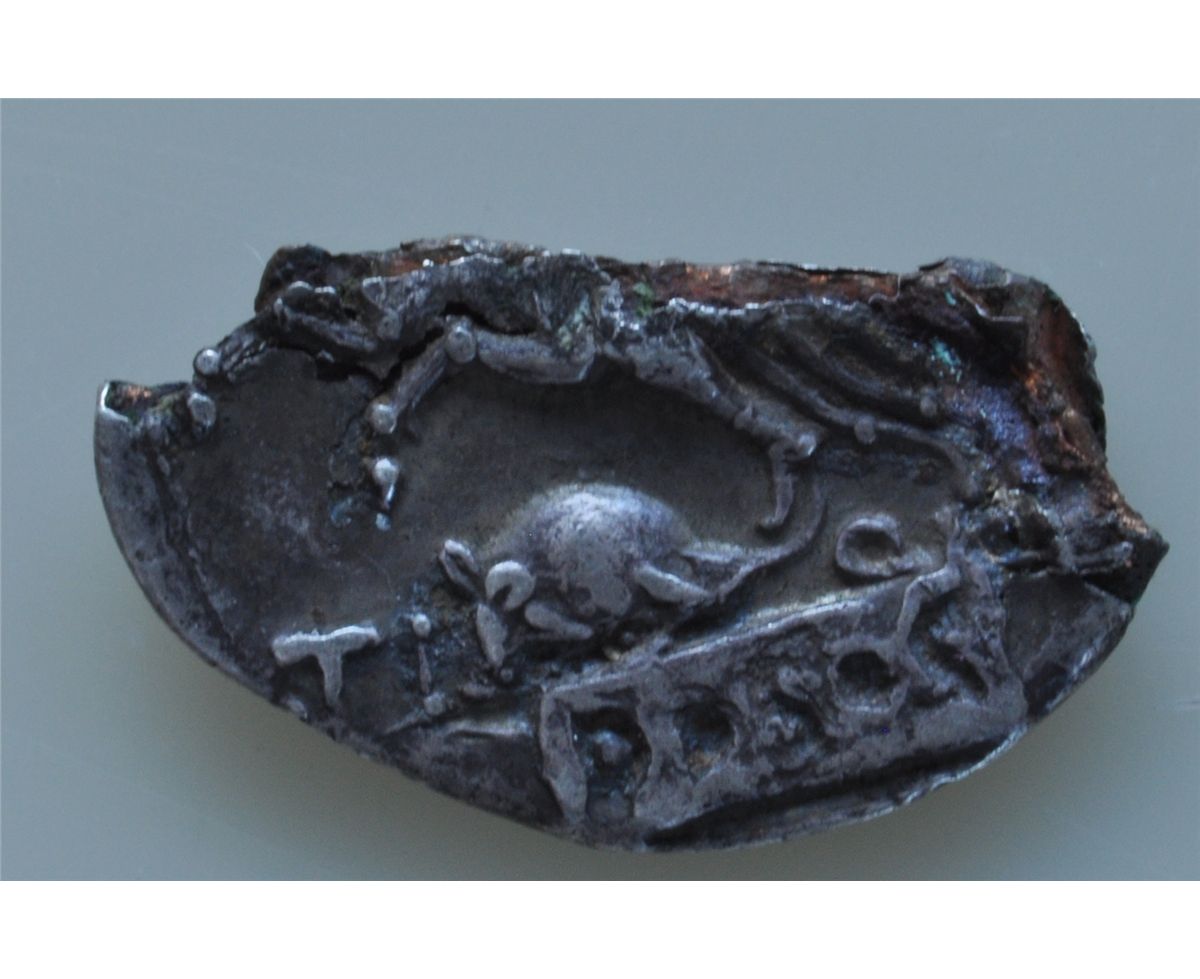 Ti. Quinctius (112/111 BC) - AR-Denarius Obv: Hercules r. Rev: DSS on tablet, planchet cut 1.2 grams S-174.