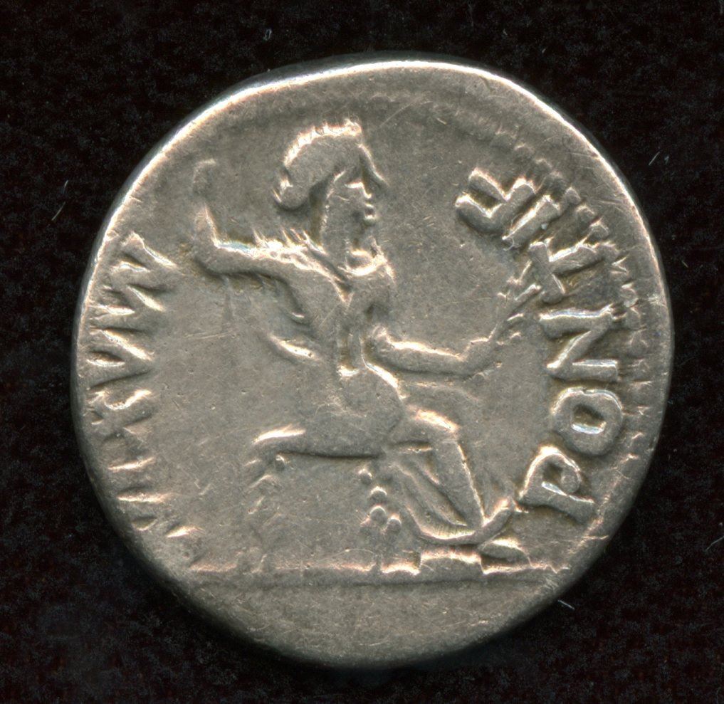 (18mm, 3.76g) "Biblical Tribute Penny" Laureate head r. Rev: Livia (as Pax) seated right, holding scepter and olive branch. RIC 30; aVF/gF.