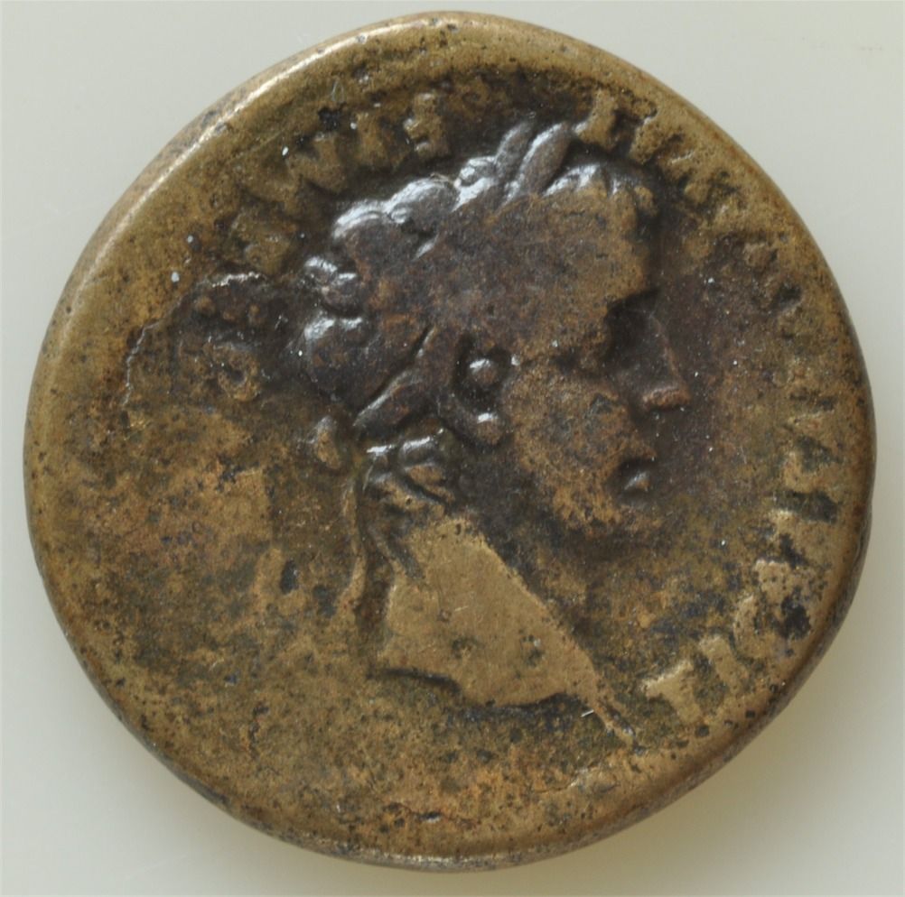 Tiberius Under Augustus (12-14 AD) - AE-Semis Lugdunum Obv: bare head r. TI CAESAR AVGVST F IMPERAT Rev: Altar at Lugdunum flanked by two columns , each with a statue of Victory. 5.4 grams S-1757 Fine.