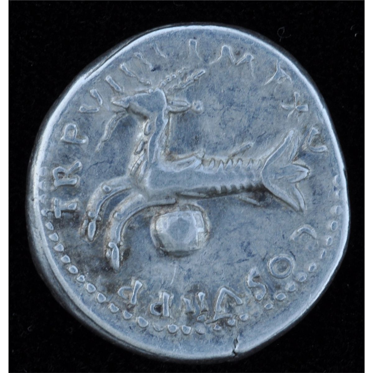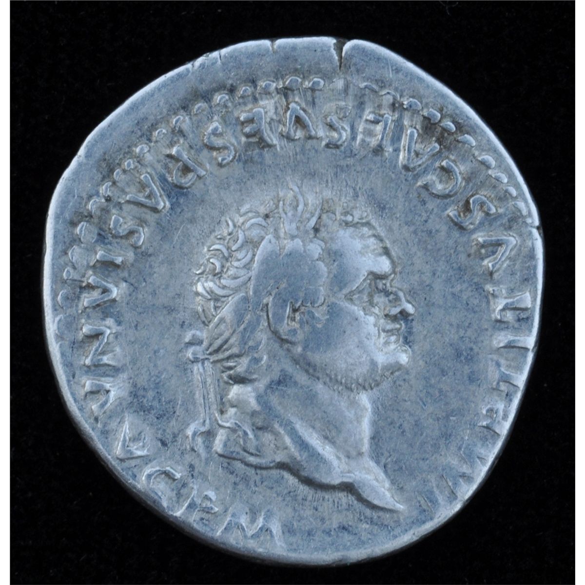 Titus (79-81 AD) - AR-Denarius Rome 79 AD. Obv: Laur. hd. r. IMP TITVS CAES VESPASIAN AVG P M Rev: Capricorn l. globe below TR P VIIII IMP XV COS VII P P 3.3 grams S-2510 VF.