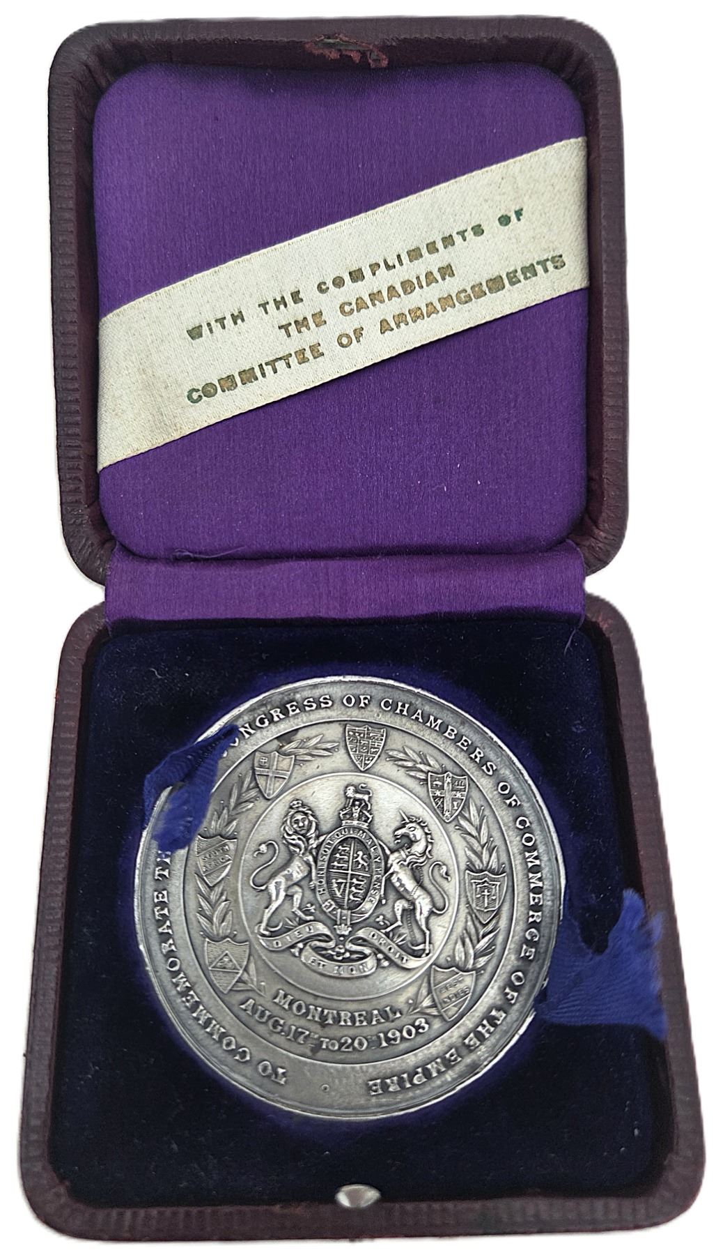 56.8mm, 90.9g (2.92ASW), Signed Birks, Housed in its original burgundy box with blue velvet and purple satin interior. Overall nice example, with a few minor scratches and rim bumps. EF. 1pc. From the Geoffrey Bell Collection.