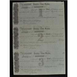 A first, second and third bill of exchange of William Hare, Halifax, Nova Scotia, dated 186_, all joined in one sheet, unused, EF