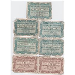 Lot of seven: The Filling Station Limited, Moncton, NB, green, 1 cent, VG (3); T & A Leger Ltd., Moncton, NB, 5 cent, brown, VG (2); Sanitary Ma...