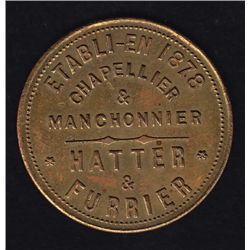 BR 790A - Similar to BR 790 but, obverse die paired with Pritchard & Andrews Ottawa reverse stock die. Brass, 28 mm, 7.2 gms, UNC, Ex:Courteau.