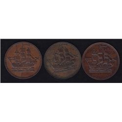 Lot of 3 Prince Edward Island Tokens - CH PE-10-34, BR 997, Lees 34, R8, VF+; CH PE-10-34, Lees 34, R8, VF; CH PE-10-35, BR 997, Lees 35, R9. 3 Pcs.