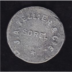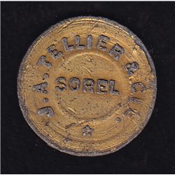 BR 661 - Tellier & Co., Sorel, PQ, SCARCE, lead but brass colored, AU, 18 mm, 3.7 gms.