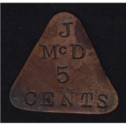 BR 757B, Bowman 596-O-G - J McD, London, ON., brass, EF, triangle shape, 28x25 mm, 3.0 gms., Jerry McD on reverse. SCARCE.