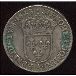 deuxième poinçon de Warin, Louis XIII, 1643A rose, G & D 48. VF, but light obv. scratches and some green on rev.