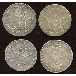 aux insignes, Louis XIV, 1702A, VG; 1702[?]G, good Fine, strong undertype obscures date; 1702[?], aFine, all G & D 189; 1702W, Fine+, G & D ...