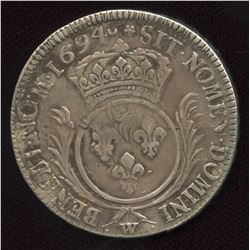 aux palmes, Louis XIV, 1694W, good VF, undertype prominent, G & D 217.