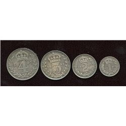AR Maundy set. (4) Milled coinage. Dated 1894 Includes 1d, 2d, 3d, 4d. SCBC 3916 VF+.