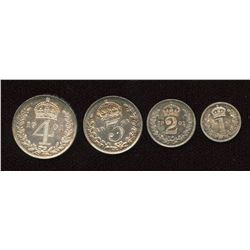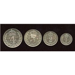 AR Maundy set. (4) Milled coinage. Dated 1901 Includes 1d, 2d, 3d, 4d. SCBC 3916 VF+.
