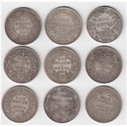 1 Rupee: 1835, 1840, 1862(2), 1878, 1880, 1887, 1892, 1893. Mostly F. 9 Pcs.