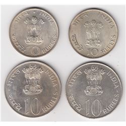 10 Rupees: 1969, 1970, 1972, 1975. AU. 4 Pcs.