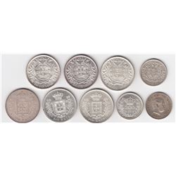 1/2 Gulden: 1858, 1863, 1898, 1908; 10 Cents: 1892, 1903; 25 Cents: 1892, 1901, 1904, 1905, 1906. 11 Pcs.