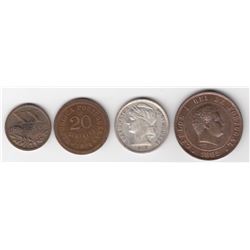 20 Centavos: 1913, 1924, 1945; 20 Reis 1892. 4 Pcs.