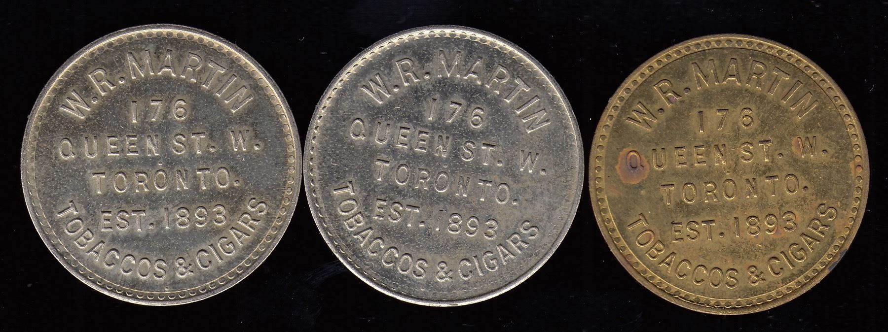 W.R. Martin, McColl 756 (5 cents); McColl 757, same token in white metal; McColl 757a, tree reverse. 3 Pcs.