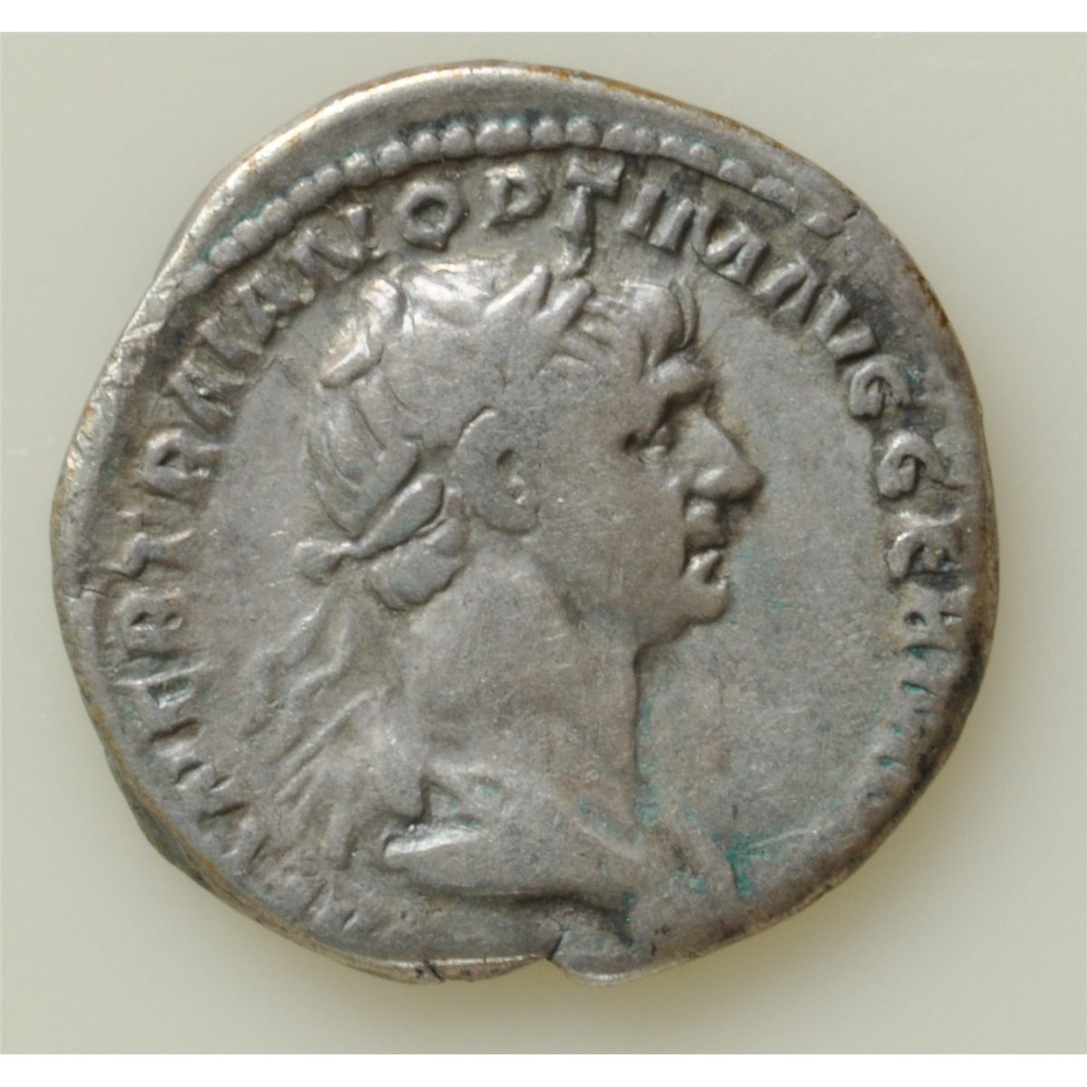 Trajan (98-117 AD) - AR-Denarius Rome 116 AD. Obv: Laur. hd. r. IMP CAES NER TRAIAN OPTIM AVG GERM DAC Rev: Salus seated left feeding snake twined around altar PARTHICO P M TR P COS VI P P SPQR in ex. SALVS AVG 3.1 grams. RIC 370 S-3156 Fine.