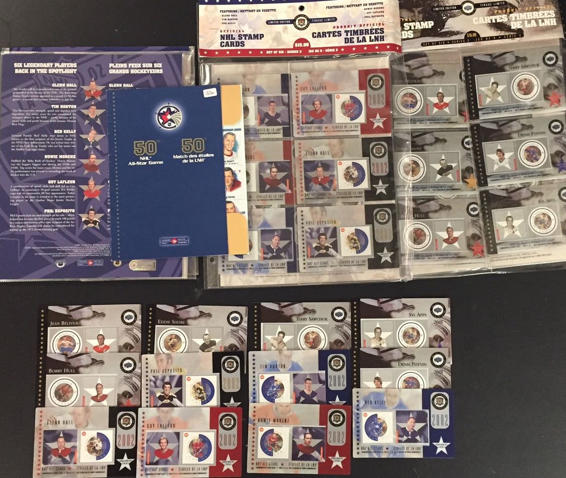 w/ stamps plus hockey sheets, and sheet of stamps.