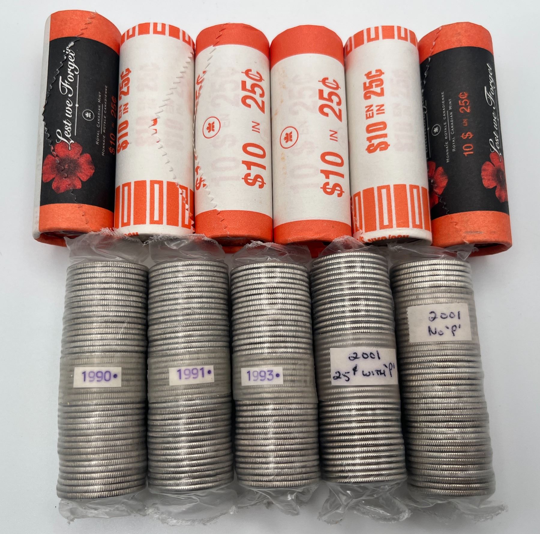 Includes: 1990, 1991, 1993, 2001, 2001P; 2 x 2004P, 2 x 2004P First Settlement, 2 x 2004P Poppy. 11 Rolls.