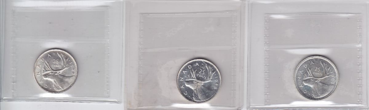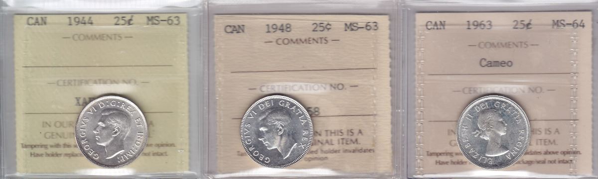 Includes: 1944 MS-63, 1948 MS-63, 1963 Cameo, MS-64. 3 Pcs.