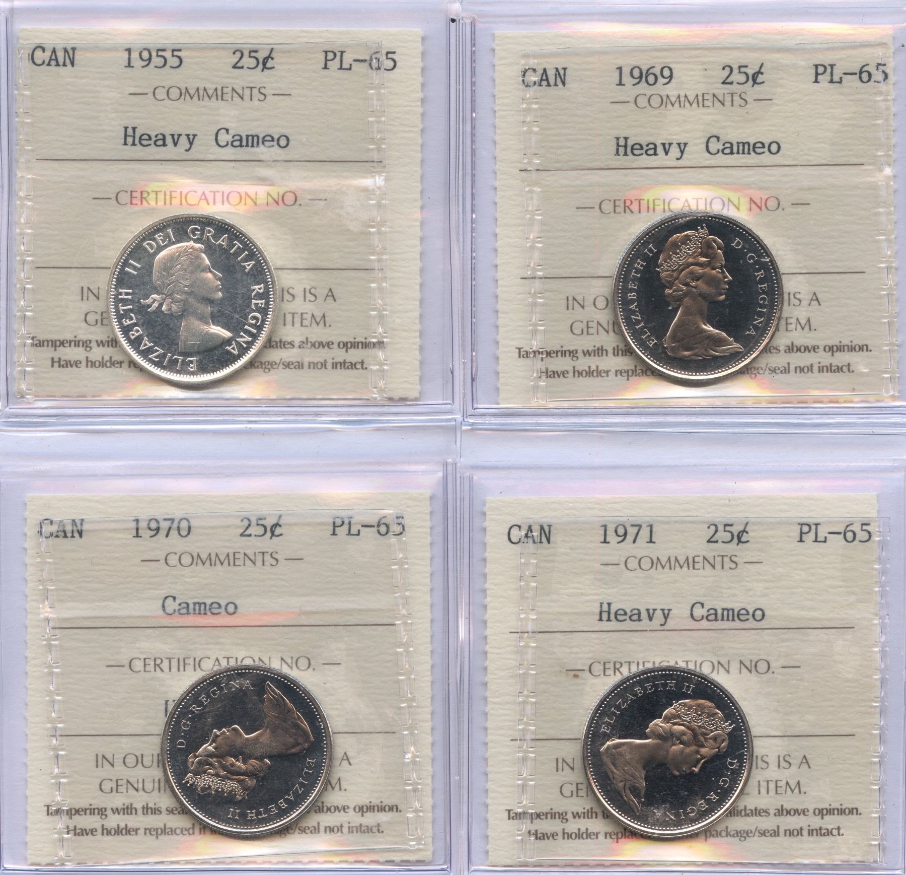 Includes: 1955 PL-65, Heavy Cameo. 1969 PL-65, Heavy Cameo. 1970 PL-65, Cameo. 1971 PL-65, Heavy Cameo. 4 Pcs.