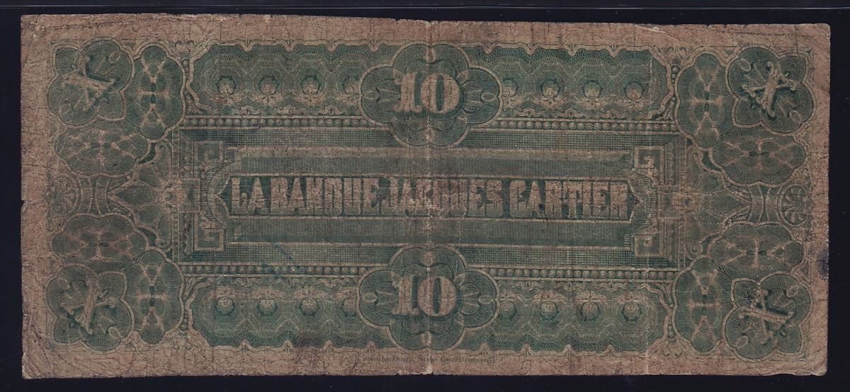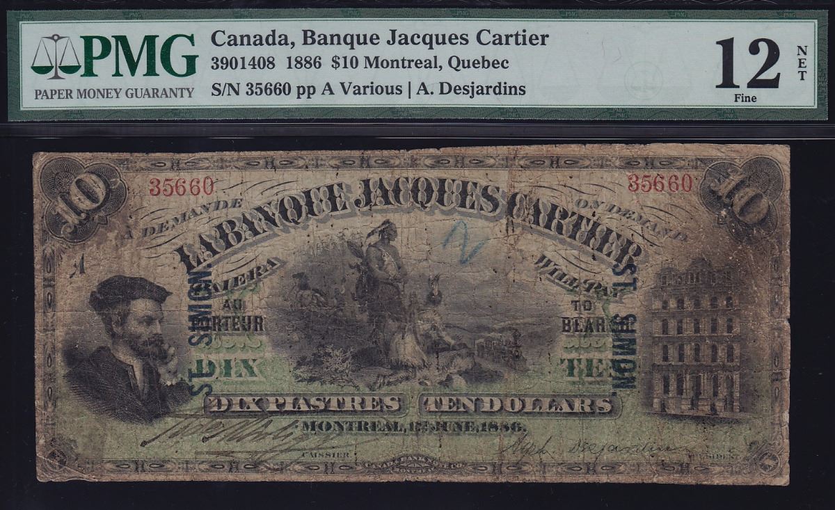 UNIQUE TROPHY NOTE - Banque Jacques Cartier $10, 1886