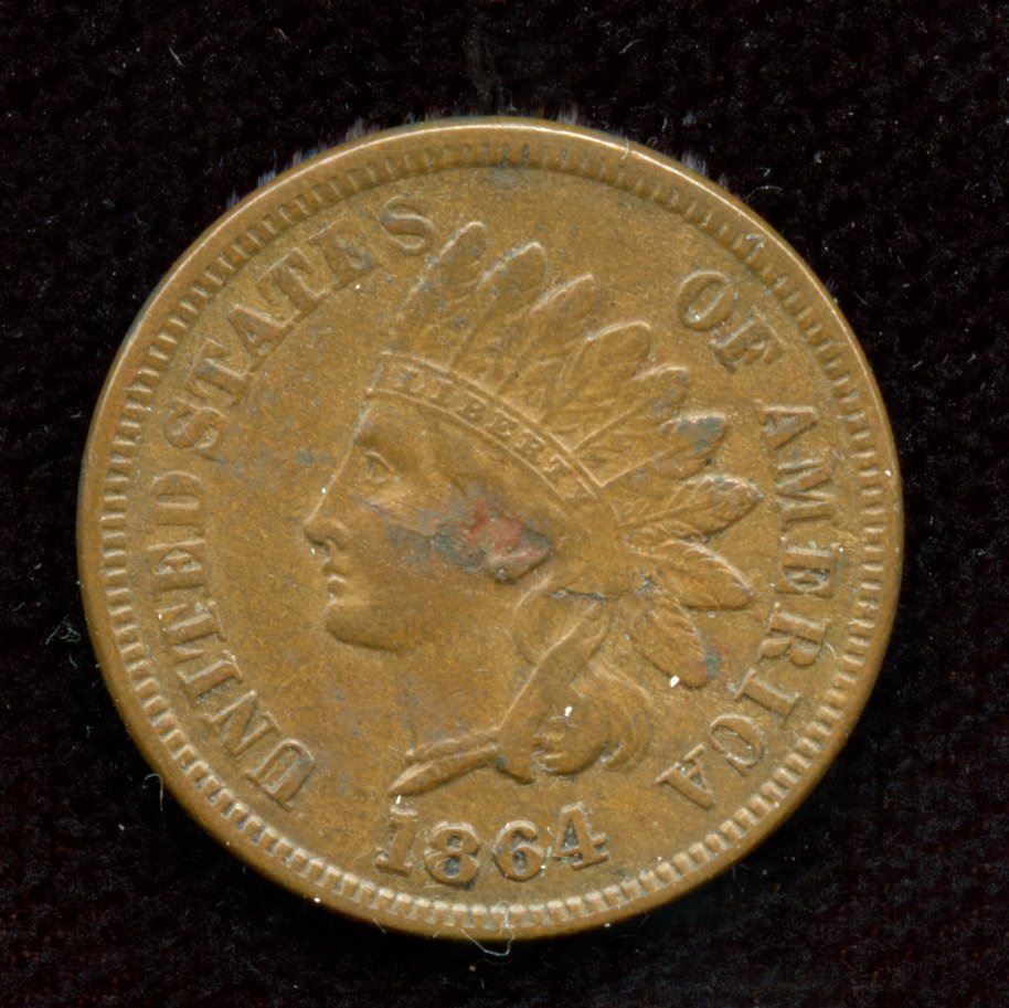 US 1c 1864 "With L" variety, VF+ grade, with minor lamination error