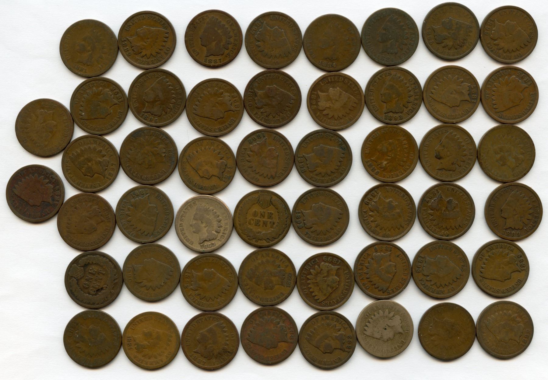 Dates included are: 1859(x1), 1863(x1), 1865(x1), 1879(x1), 1880(x1), 1881(x3), 1882(x2), 1883(x2), 1884(x2), 1886 Variety 1(x1), 1887(x3), 1889,(x3), 1890(x2), 1891(x4), 1892(x3), 1893(x2), 1895(x3), 1896(x2), 1897(x4), 1898(x3), 1899(x6). Grades range from About Good to VG; majority are About Good or Good. No culls. 50 Pcs.