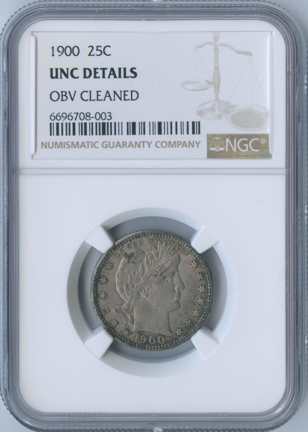 NGC UNC with Details, Obverse Cleaned. No abrasions/hairlines on the obverse. NGC Price Guide value for MS-60 is currently $325 USD.