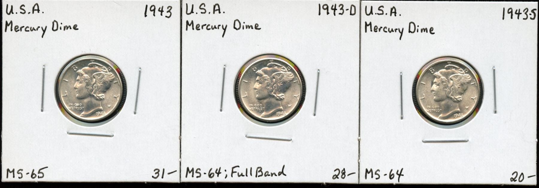Example from each mint: Philadelphia MS-65; Denver MS-64, Full Band (on Roman fasces); San Francisco MS-64. 3 Pcs.