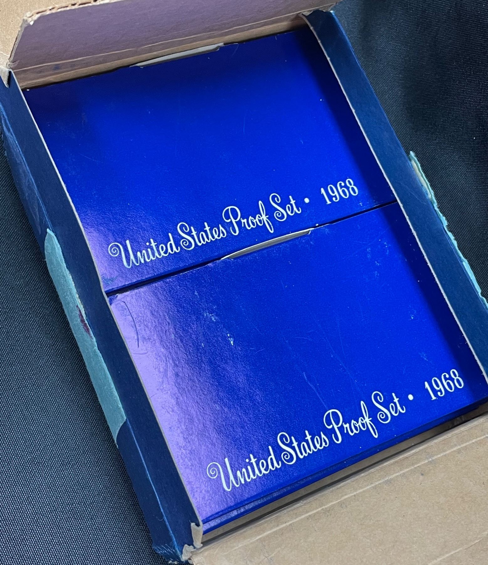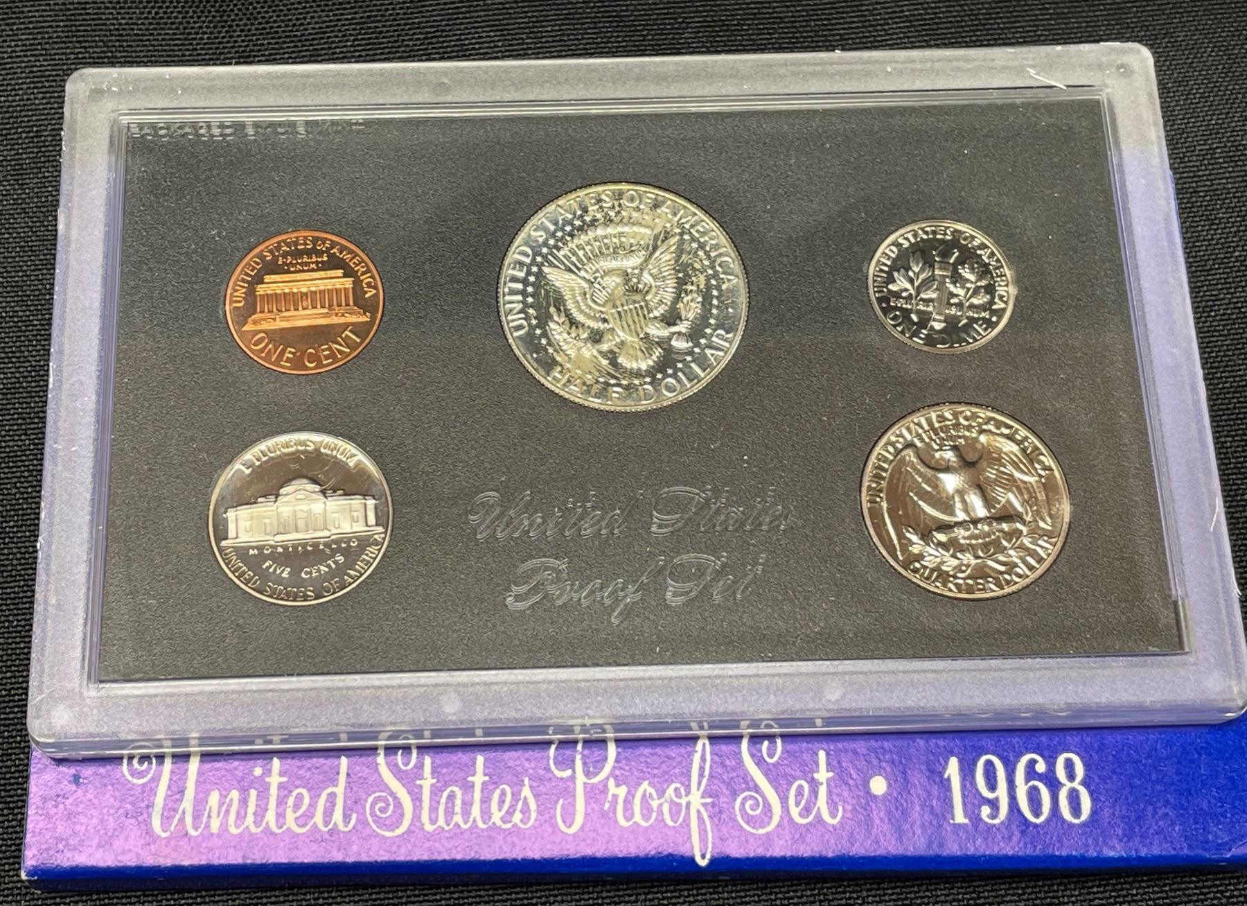 (10) 1968 US Proof Sets in original shipping box (opened), and 1970, 1971 & 1972 set. A total of 13 sets. The sets contain five different coins, and in the 1968 & 1970 sets, the 50 cent coin is 40% silver. The coins include: the penny, nickel, dime, quarter, and half dollar. The S mint mark can be found on each coin.