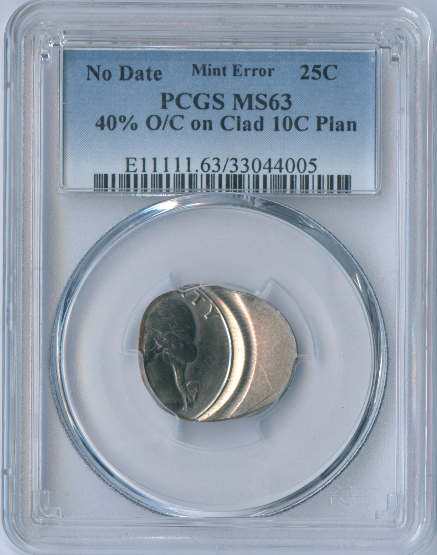 USA 25-cent ERROR - United States (No Date), struck 40% off centre on a clad 10c planchet, a very interesting error, PCGS MS-63.