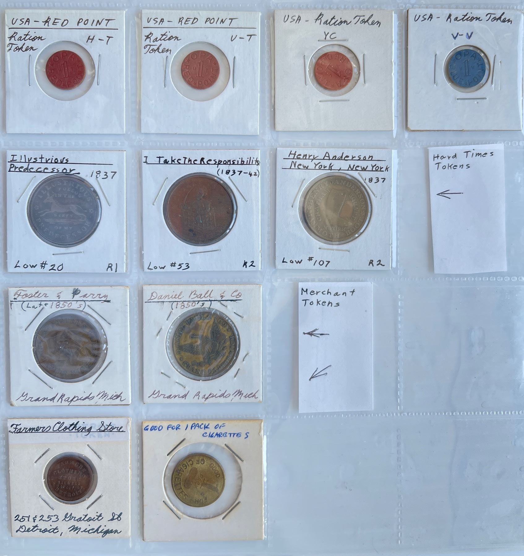Includes Hard Times, merchant and tax tokens. 13 Pcs.