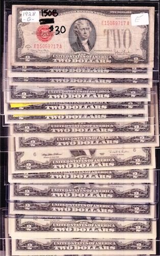 USA - Lot of 34 small size $2 notes: 1928, 1953, 1963, 1976, 2003 and a few star notes. VF-UNCs, includes some consecutive notes. 34 Pcs.