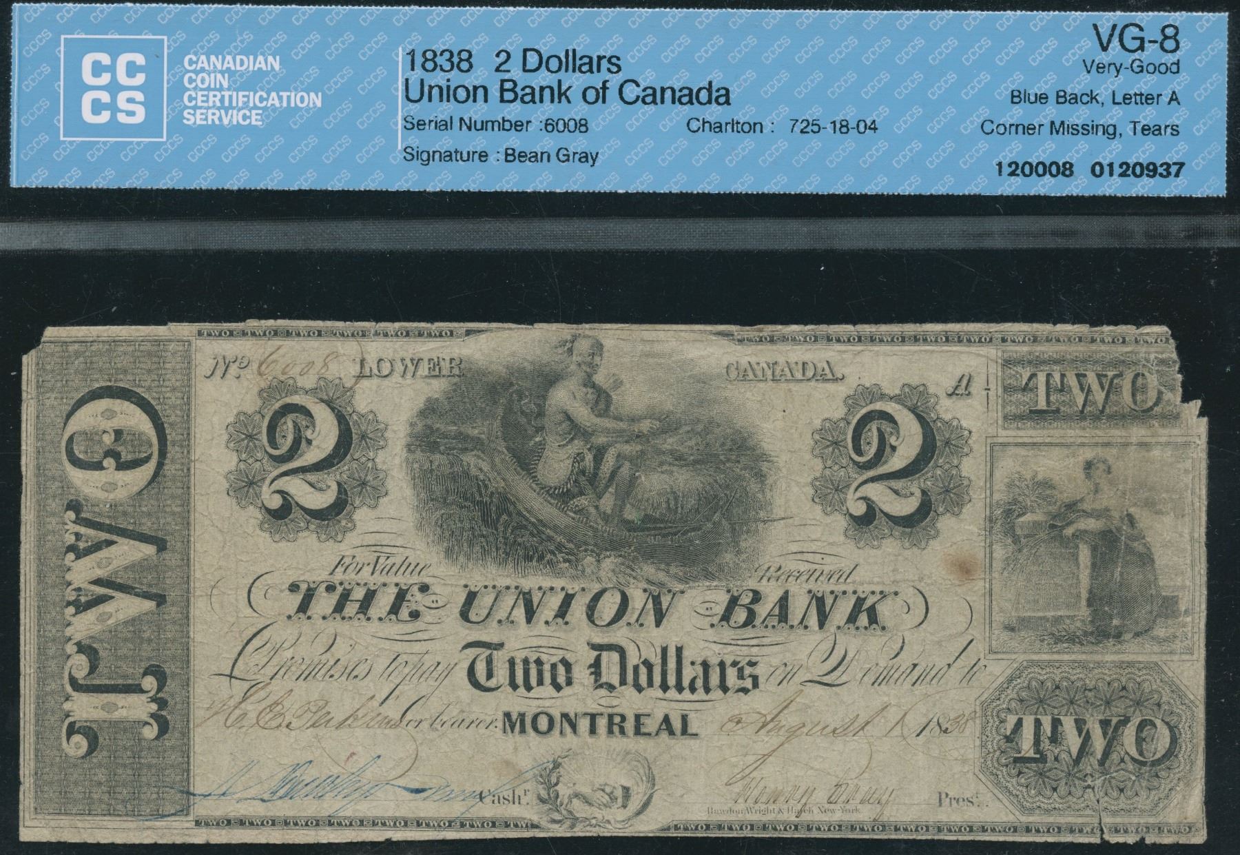 CH 725-18-04. CCCS VG-8, corner missing, tears. S/N:6008/A.