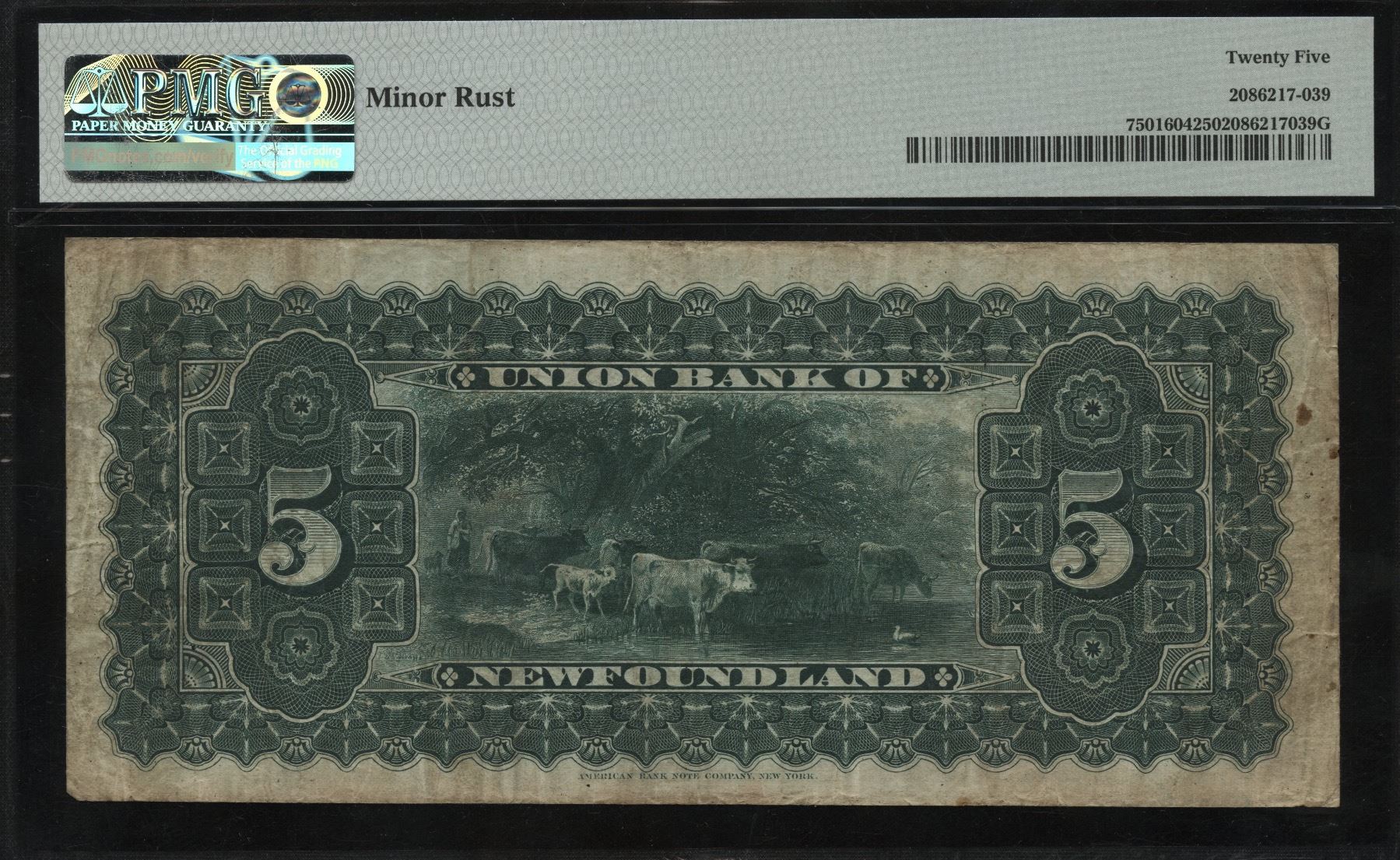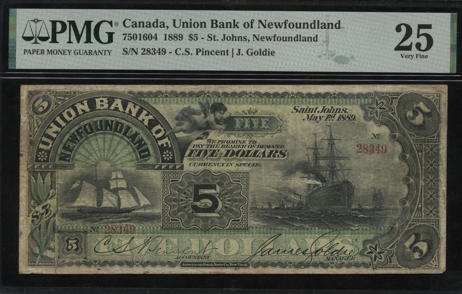 CH 750-16-04. PMG VF25. Only 16 on the registry, this ranks among the best. Plastered with boat vignettes, a superb trophy note. Minor rust is noted (on the back). S/N:28349.