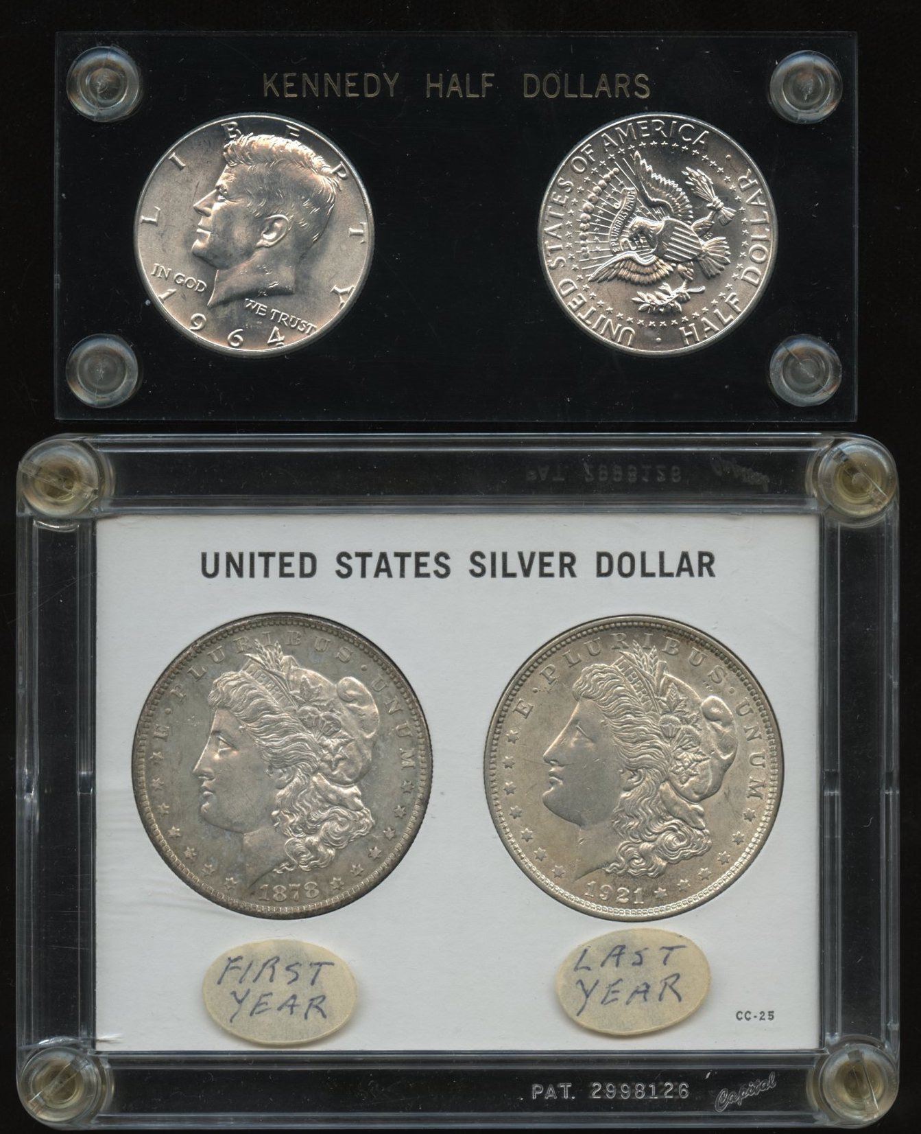 United States $1 silver Morgan dollars in Capital Holder. Includes 1879 first year, and 1921 last year. Beautiful condition