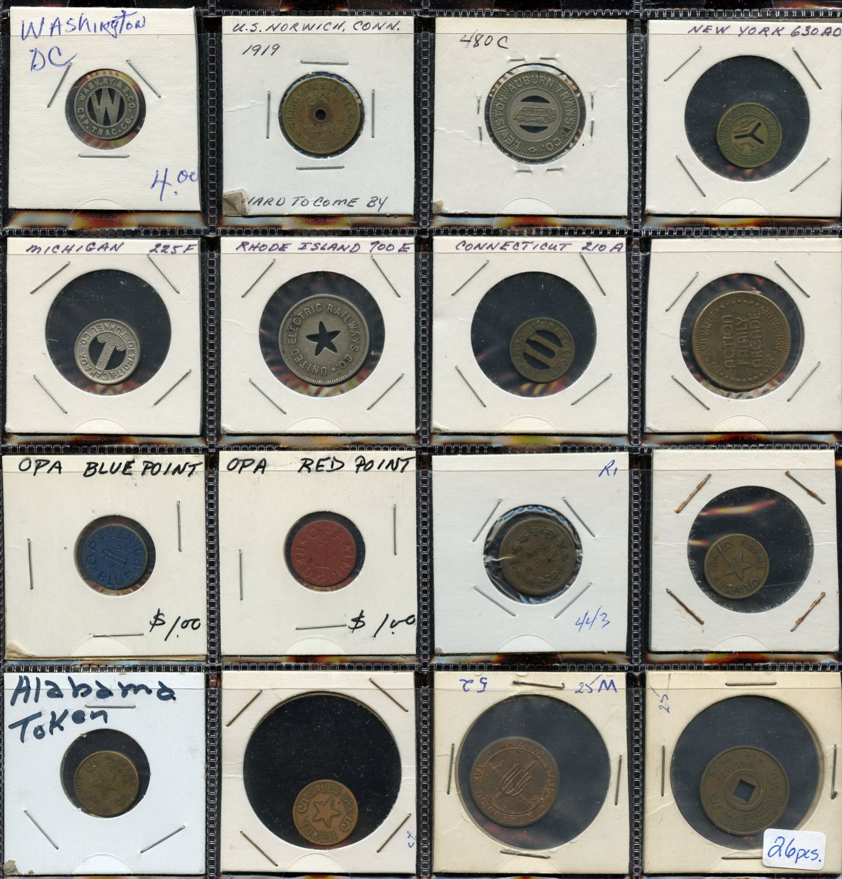An assortment of US tokens, transportation, good for's, 59 in all. Should be viewed. 59 Pcs.