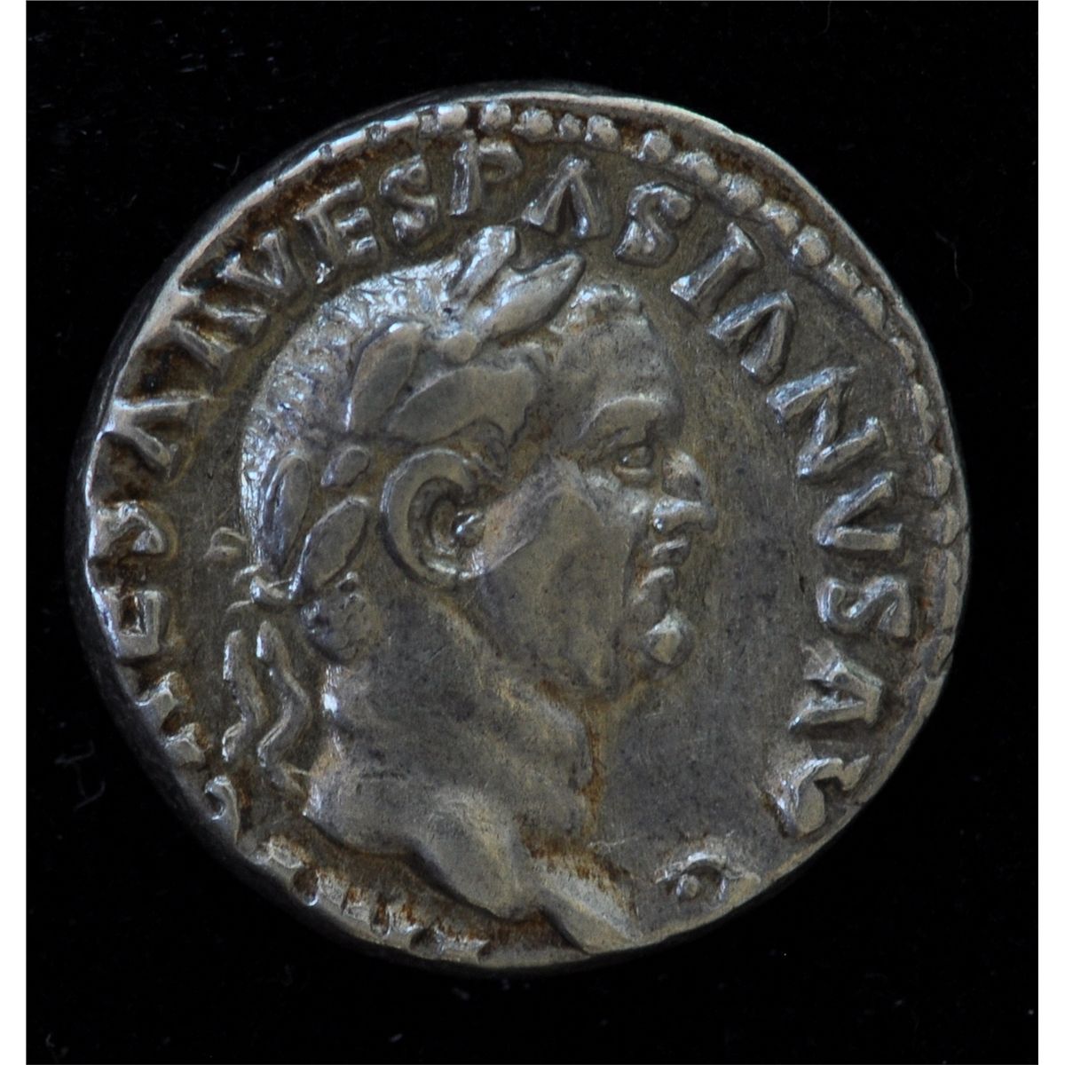 Vespasian (69-79 AD) - Rome AR-Denarius 69-70 AD. Obv: Laur. hd. r., IMP CAESAR VESPASIANVS AVG. Rev: Judaea seated beside trophy IVDAEA. 3.57 grams. S-2296. A great Judaea Capta Denarius. EF.