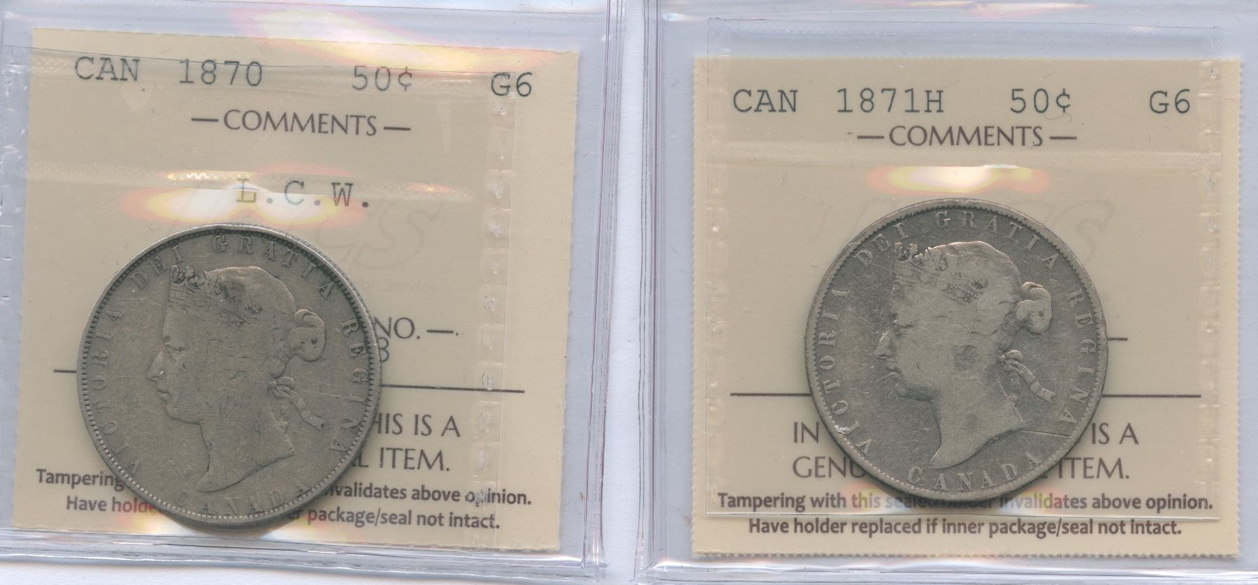 1870 ICCS G6 - L. C. W. || 1871H ICCS G6. 2 Pcs.